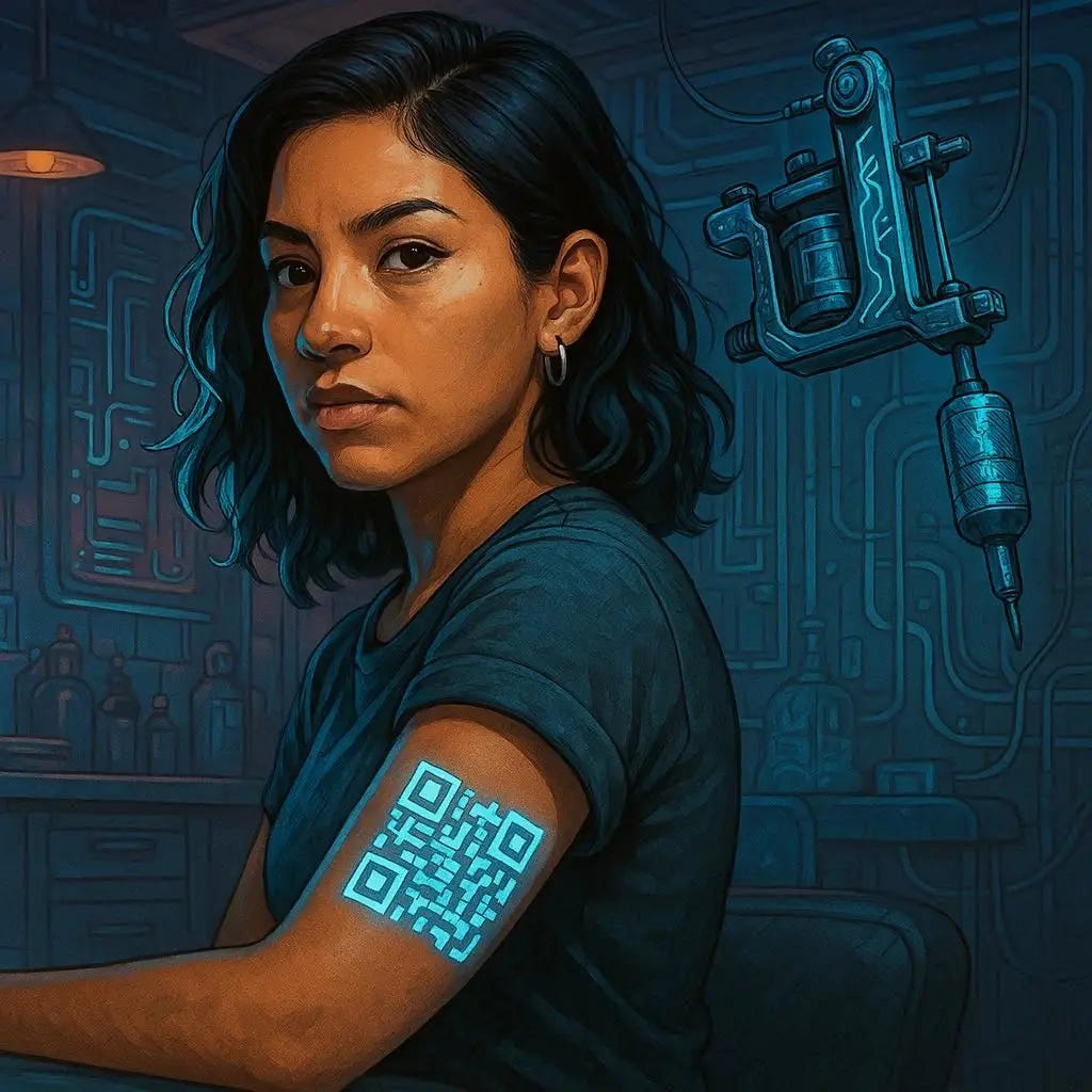 She’d spent a few weeks designing the tattoo to ensure it would last a while even in different lighting and angles. The error correction code would need to withstand a bit of fading and the address pointed to a server owned by a local co-op which had low transaction fees and gave her physical access.