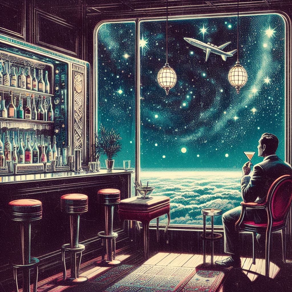 The airlock hissed, equalizing the air pressures with a groan of stressed metal. Rudolph Green, the foreman of Cooper Heights Reclamation, stepped into the Syndicate's station tens of miles above the planet. He'd expected to see chrome and holograms, the cold sterility out of science fiction. To his surprise, the station had wood paneling lining the curved walls. There was a light scent of pipe tobacco in the air. A soft red carpet absorbed his steps.