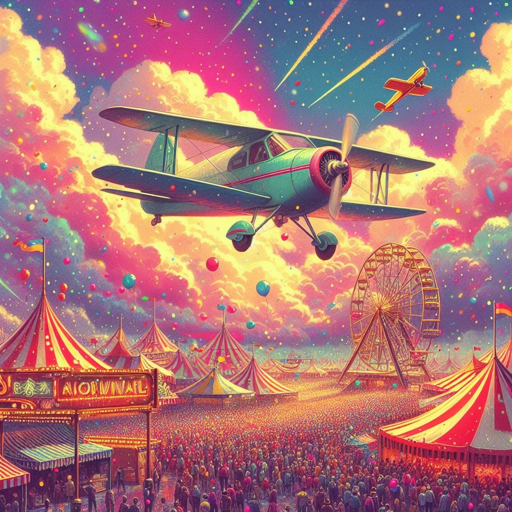 The carnival setup overnight. The noise was unbearable, and few were able to sleep the whole night. Big tents self-assembled as the pieces snapped into place. Clowns put on their best makeup and went around the grounds in funny clothing. Though everyone’s attention was on this man and his plane.